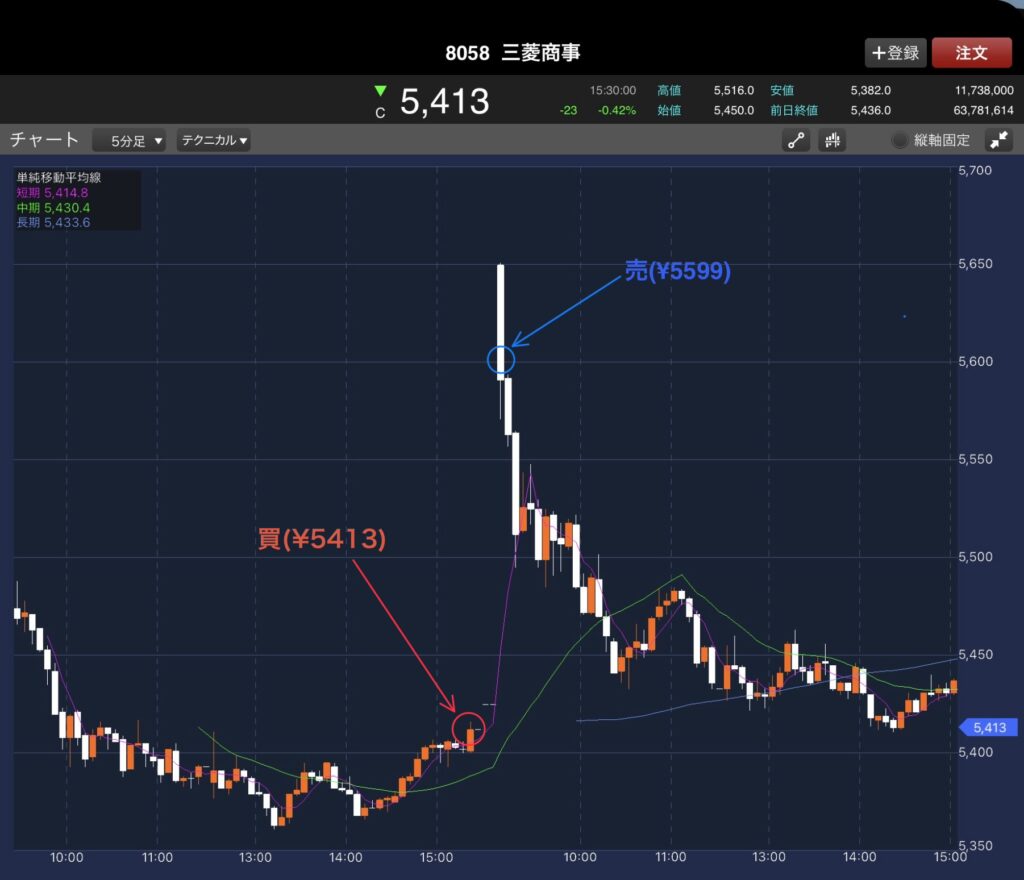 結果的には、どちらもしっかり上昇したので、寄り付き後すぐに売却しました